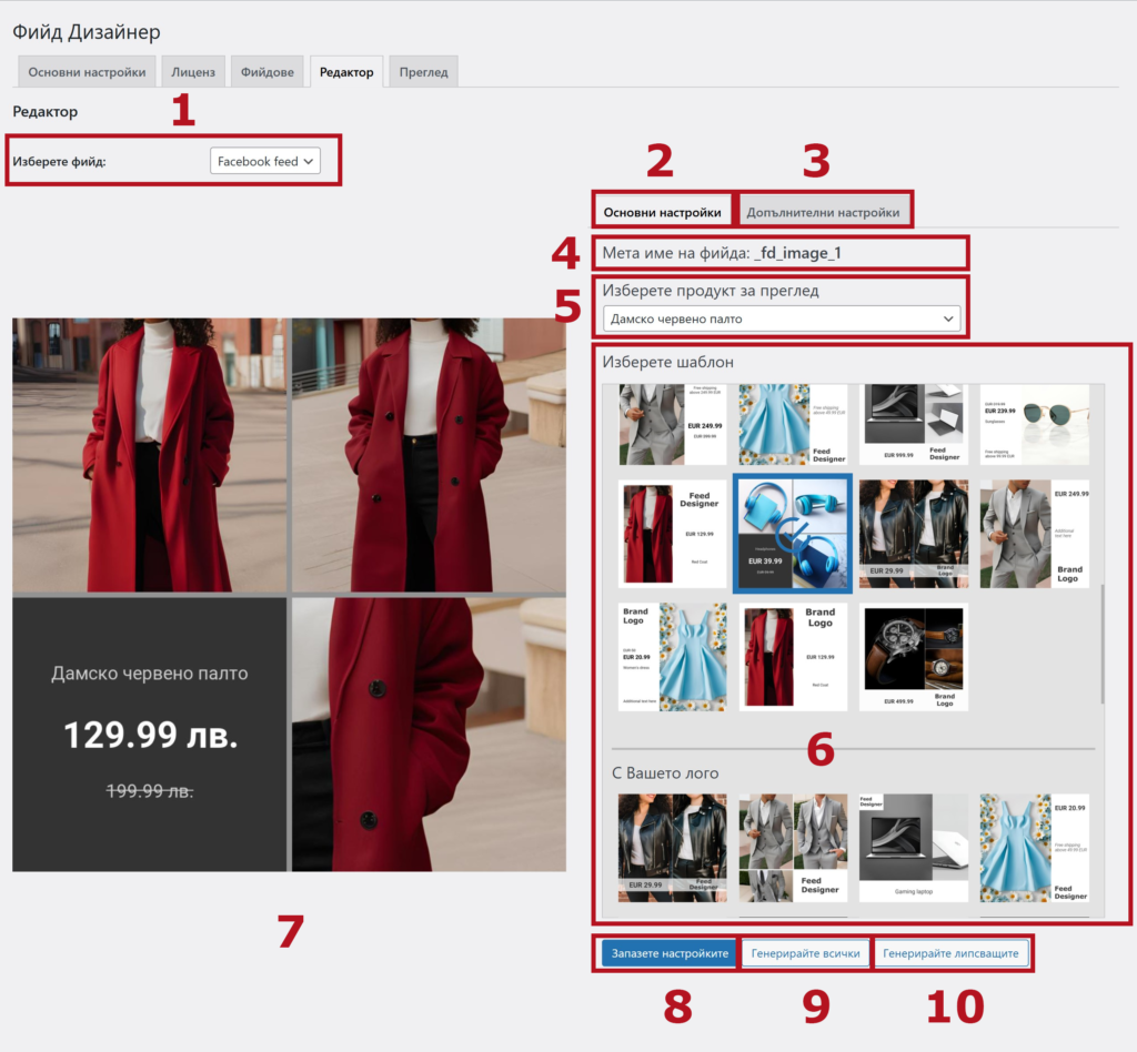 - Избор на шалбон, който да използвате за Вашия фийд.