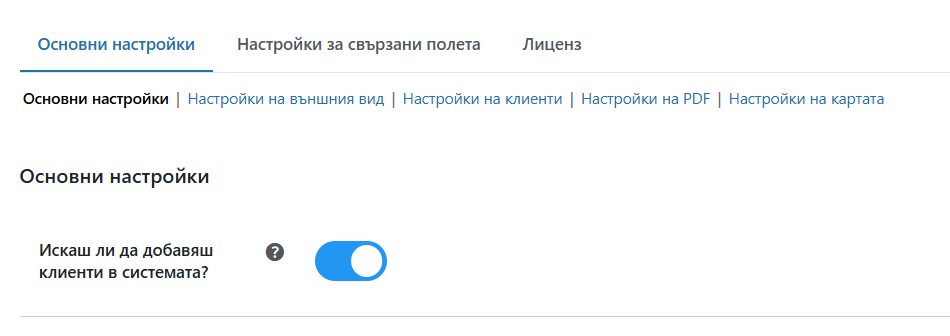 *Това меню е налично само ако опцията за клиенти от Основните настройки: