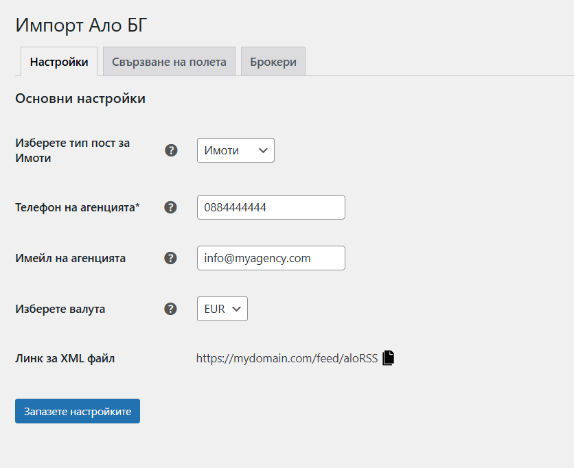 Задайте основните настройки на Вашия сайт и агенция.