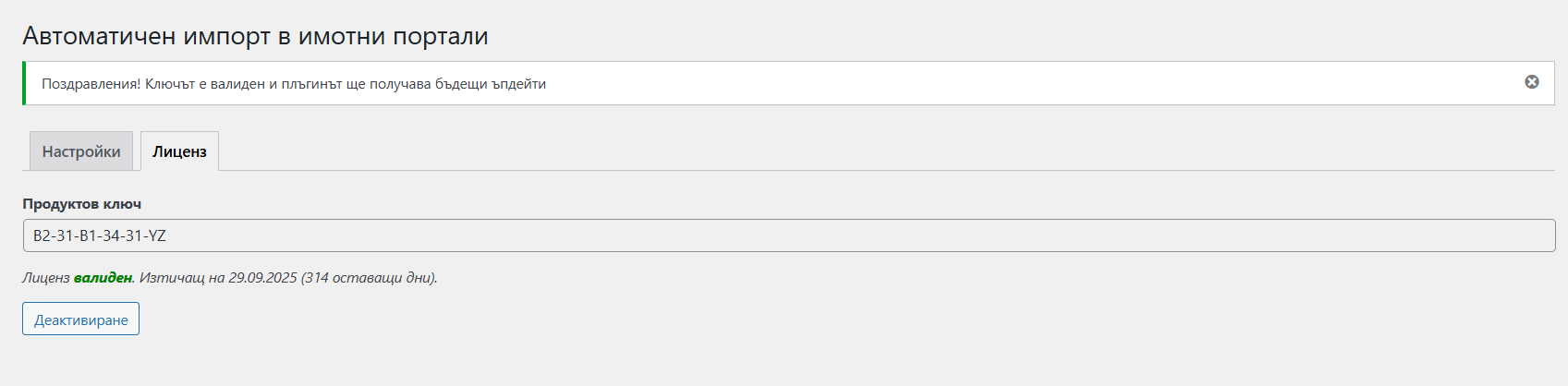 - Влезте в менюто “Real Estates Portal Importer” и след това в раздел “Лиценз”, за да го активирате с ключа, който сте получили при завършване на покупката.