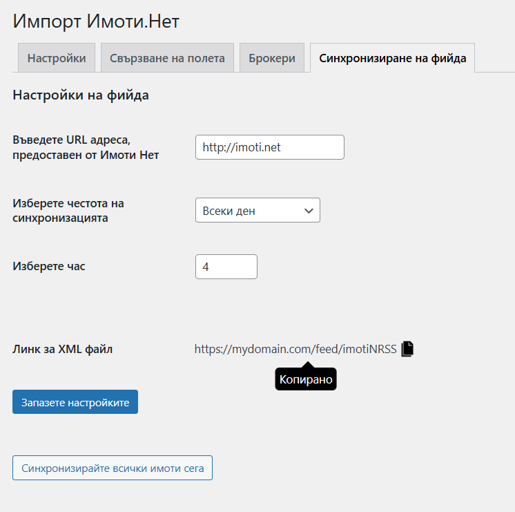 *Точното време за обновяване на фийда варира, когато използването WordPress Cron. За по-точна синхронизация използвайте Вашия cPanel.