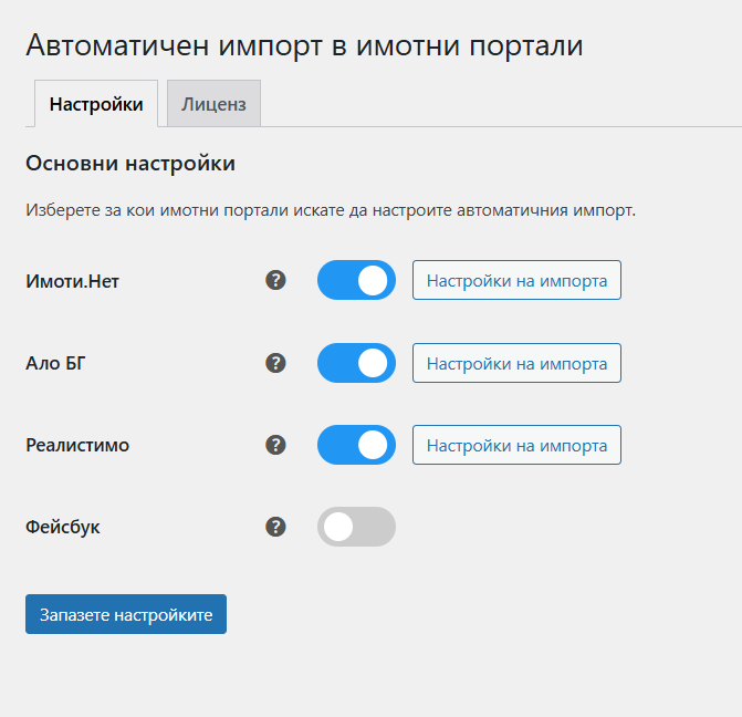 - Влезте в раздел “Настройки”, включете съответните портали, за които искате да правите импорт.