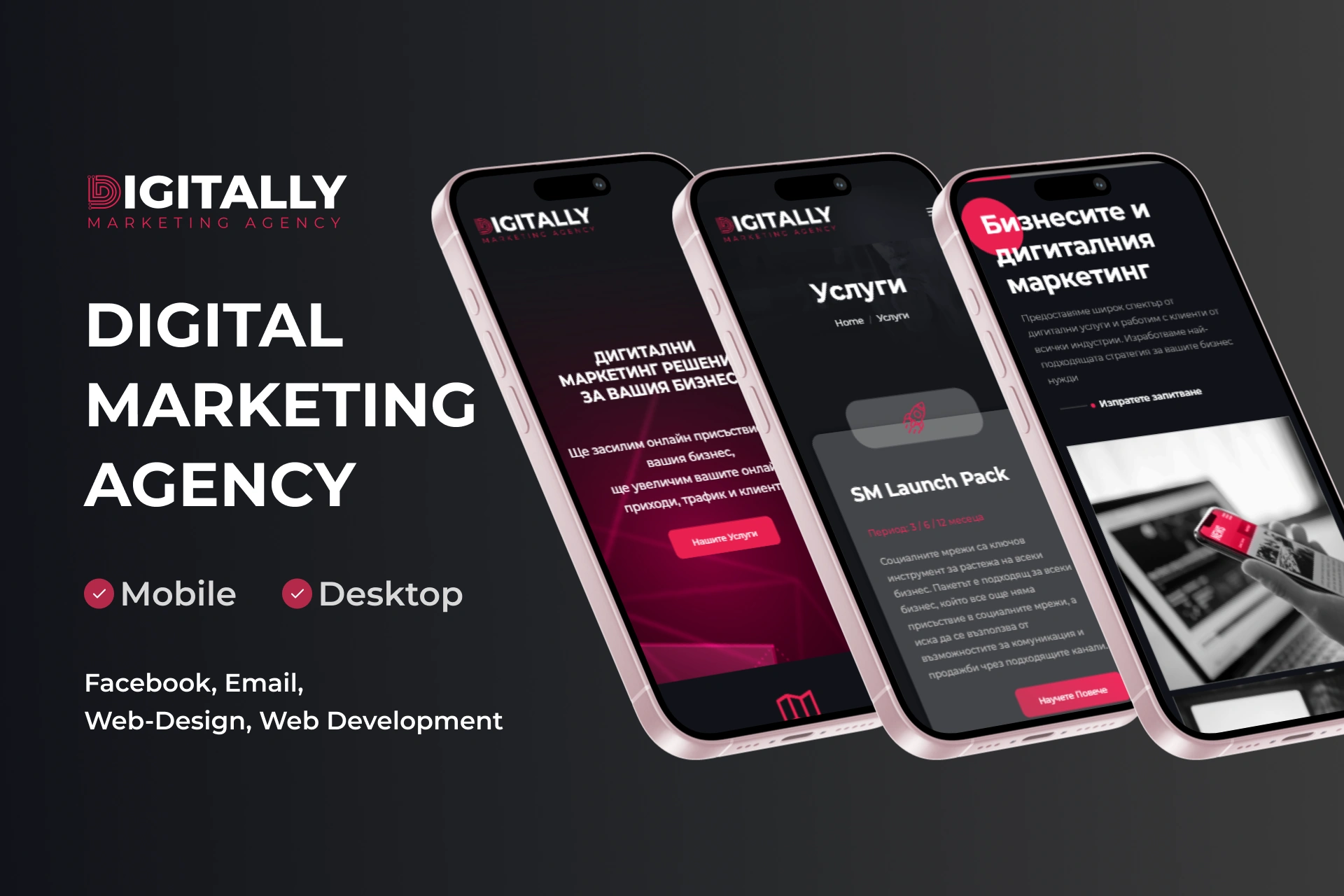 Digitally е маркетинг агенция, специализирана в създаването и изпълнението на ефективни стратегии за онлайн присъствие, насочени към онлайн магазини, физически бизнеси и компании в сферата на услугите. Агенцията помага на клиентите си да постигат своите бизнес цели чрез цялостни решения в областта на дигиталния маркетинг.
