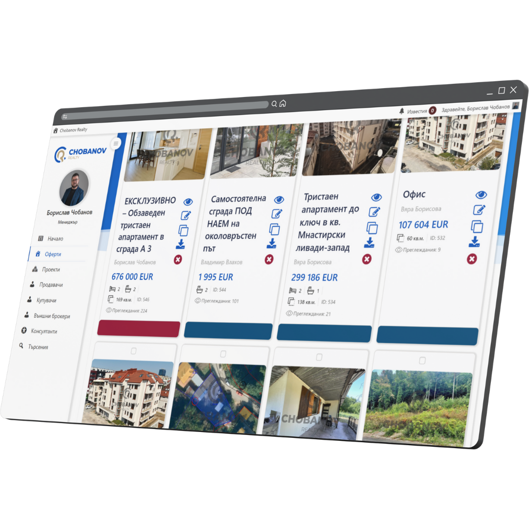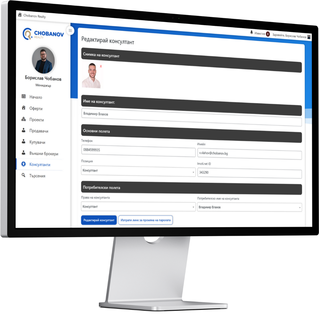 2. Консултантите управляват собствено портфолио от клиенти, оферти и проекти;