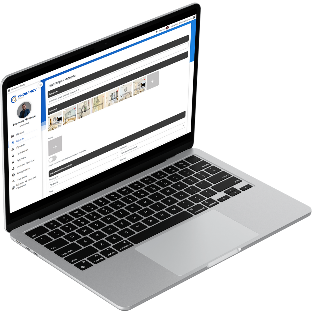 1. Интуитивен интерфейс за въвеждане и редакция на оферти, проекти и клиентски данни;